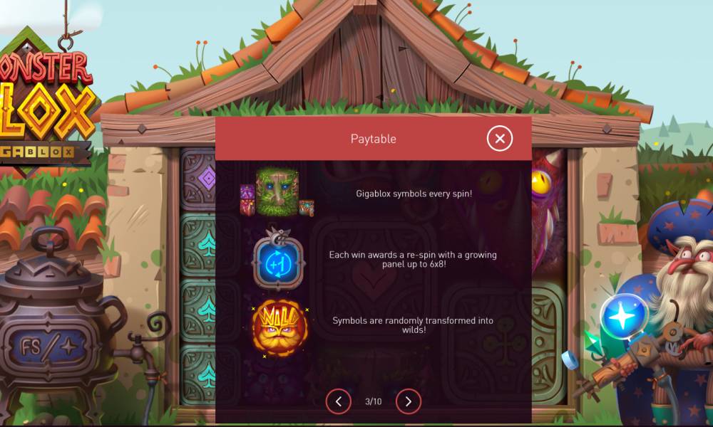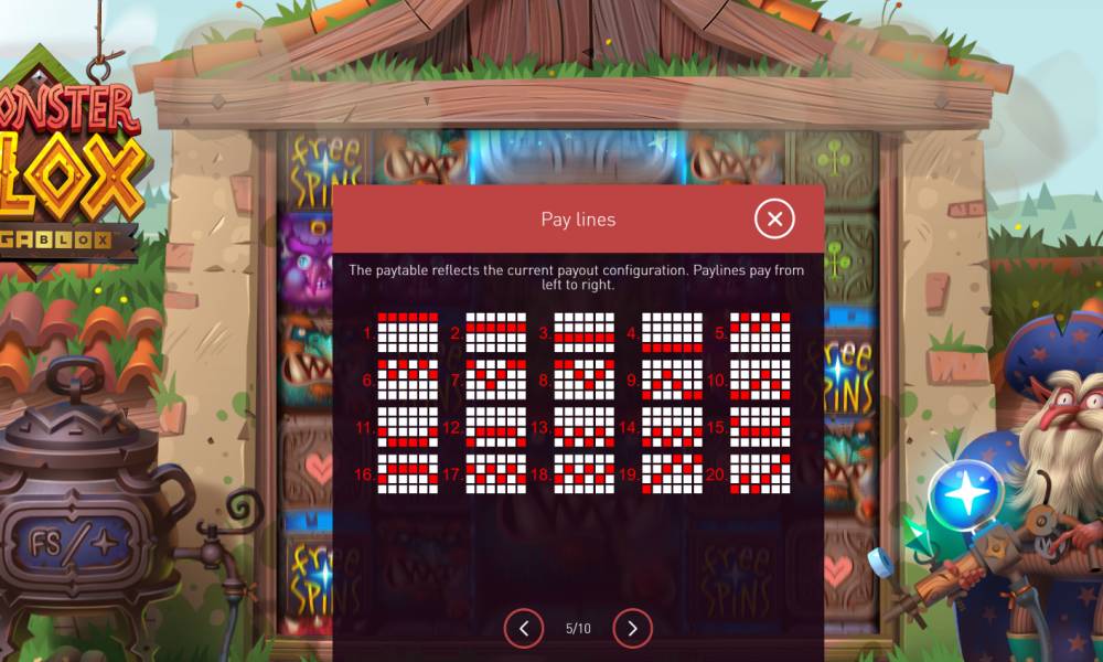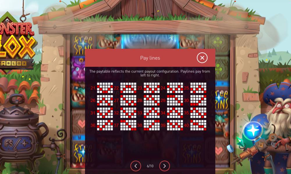 Monster Blox es una tragaperras con 6 rodillos y 4 filas, que pueden ampliarse hasta 8 filas. El campo de juego comienza con 40 líneas ganadoras, que aumentan hasta 100 líneas. Las combinaciones se forman de izquierda a derecha, empezando por el primer rodillo. El tamaño de las apuestas - de 20 a 10.000 monedas por tirada. Las ganancias máximas alcanzan 7500x de la apuesta. Hay un juego de riesgo disponible en el juego, así como muchos bonos y freespins que hacen el proceso aún más interesante.