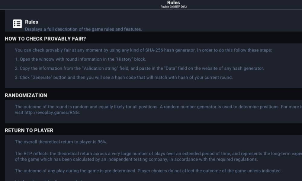 Si ha decidido experimentar las delicias de Pachin Girl del desarrollador EvoPlay, pero tiene dudas sobre la elección de un establecimiento fiable, le recomendamos que juegue sólo en los casinos más reputados que encontrará en nuestro sitio.