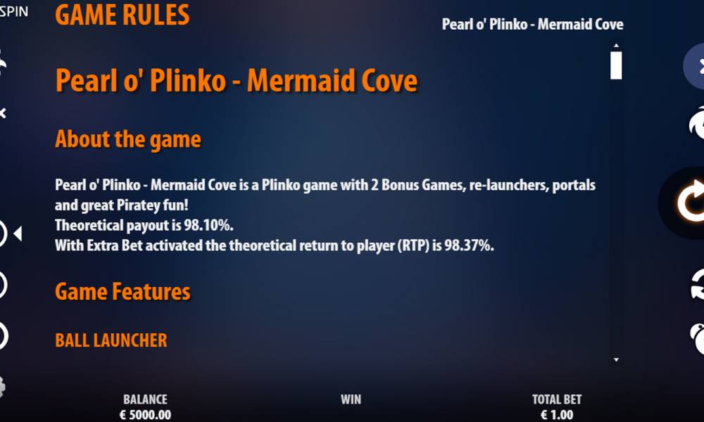 El juego Pearl o' Plinko - Mermaid Cove no tiene símbolos Wild ni Scatter.