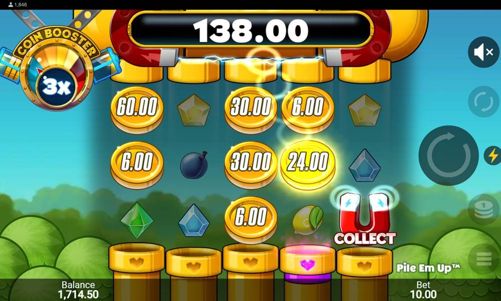 Coin Booster. Funciona en tiradas normales, Bonus Corazón y Tiradas Gratis Flor. En la parte superior izquierda del campo de juego hay un contador con un multiplicador adicional, que puede tomar un valor de x1 a x10. Por cada símbolo 1UP atrapado en el campo, el contador aumenta en +1. El multiplicador acumulado se paga si se activa la función Collect, o al final de la ronda Heart Bonus.