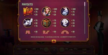 | Los juegos de bonificación | Expanding Wild, Expanding Wild Free Games, Synced Reels, Crystal Ball, Throwing Cards, Illusion Countdown, Magic Hat Re-Spins |