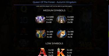 Queen Of The Forest - Autumn Kingdom es una tragaperras tranquila, interesante y rentable del proveedor Spinomenal. Para muchos el juego se convertirá en uno de sus favoritos, y para algunos ocupará la primera posición de la lista. En cualquier caso, la tragaperras merece la pena.