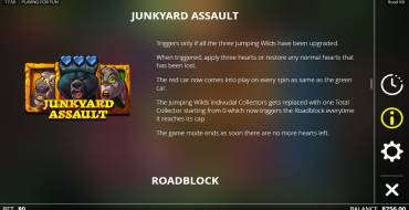 Al entrar por primera vez en la tragaperras online Roadkill, el jugador ve un breve menú introductorio. Puede explorar las características detalladas haciendo clic en las tres barras. Si no puede esperar, puede entrar directamente en el juego: