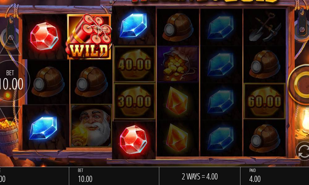 El campo de juego de la tragaperras online tiene una cuadrícula de 3-3-3-4-4-4-4-4-4-4-4. Las combinaciones ganadoras se forman desde el borde izquierdo hacia la derecha a partir de 3-6 símbolos idénticos. Dado que basta con reunir símbolos en rodillos vecinos para obtener una recompensa, los usuarios disponen de 2304 líneas de pago. El juego cuenta con gemas, picos, vagones de oro y el propio cazador de tesoros. Hay un total de 2 símbolos mayores, 5 medianos y 3 menores. También hay 4 símbolos especiales. De las características de bonificación sólo se proporcionan respins con multiplicadores. La apuesta en la tirada puede elegirse entre 0,1 y 50 euros. Las ganancias máximas no superan la cantidad apostada más de 50.000 veces.