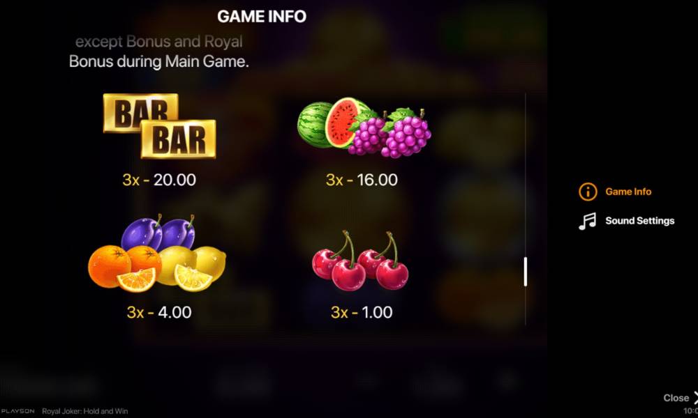 Royal Joker: Hold and Win de Playson se ha convertido en una tragaperras tan especial. A pesar de sus raíces clásicas, el juego cuenta con el popular sistema Hold and WIn y un enorme multiplicador de x21150. Muchos respins, bonitos gráficos, grandes ganancias y una emocionante jugabilidad en este increíble juego que guarda muchas sorpresas.