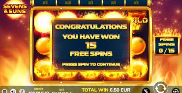 Sevens&Suns es una tragaperras online de cinco tambores con tres filas de símbolos. El juego utiliza 4 símbolos inferiores y 2 superiores. Todas las frutas dan pagos a partir de tres. El siete y el comodín dan premios a partir de dos. Las combinaciones ganadoras se forman en 10 líneas de pago fijas. Reúnalas estrictamente en una fila desde el rodillo situado más a la izquierda. La apuesta en la tirada puede hacerse en el rango de 0,1-100 euros, las opciones son sólo 16. Las ganancias máximas son de x10000. Los usuarios tienen acceso a bonificaciones - tiradas gratis, símbolo Wild, Multiplicadores. El proveedor ha añadido la opción Side Bet para aquellos que no temen arriesgarse y quieren llevarse un premio mayor.