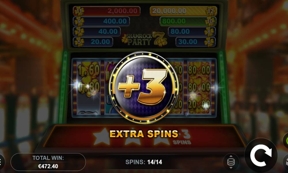 Las rondas de tiradas gratuitas de Shamrock Party 7s incluyen 8 tiradas. Se activan cuando aparecen 3 símbolos Bonus en el juego simple. El nivel de HyperBet y la apuesta en las tiradas gratuitas serán los mismos que estaban en vigor cuando se lanzó el paquete. La función Extra Free Spins funciona.