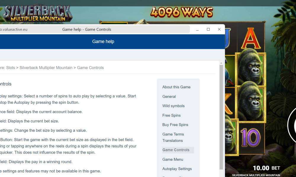 La apuesta mínima que Silverback: Multiplier Mountain puede aceptar es de 20 céntimos.