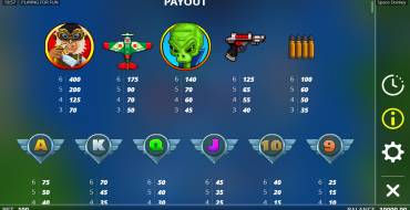 | La tema | Animales, Suerte, Acción, Espacio, Retro, Estrellas, Armas, Aeroplanos, Bombas, Cielo |