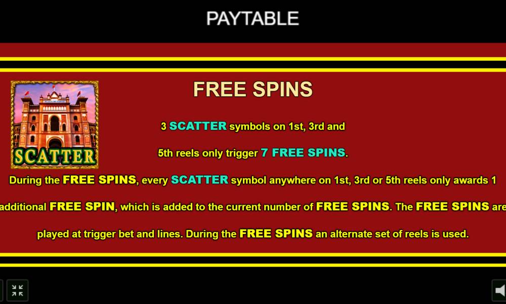 El jugador obtendrá siete tiradas gratuitas cuando aparezcan tres símbolos Scatter. Se añadirá una tirada gratuita al campo por cada nuevo símbolo Scatter. La partida se juega en un juego de rodillos estándar con la apuesta vigente en el momento de activar la ronda.