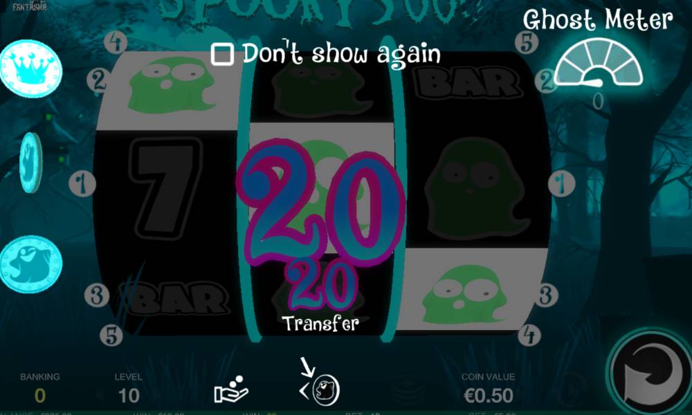 El juego de bonificación se detiene cuando ganas el máximo de 5.000 monedas o cuando el medidor de fantasmas se queda sin dinero.
