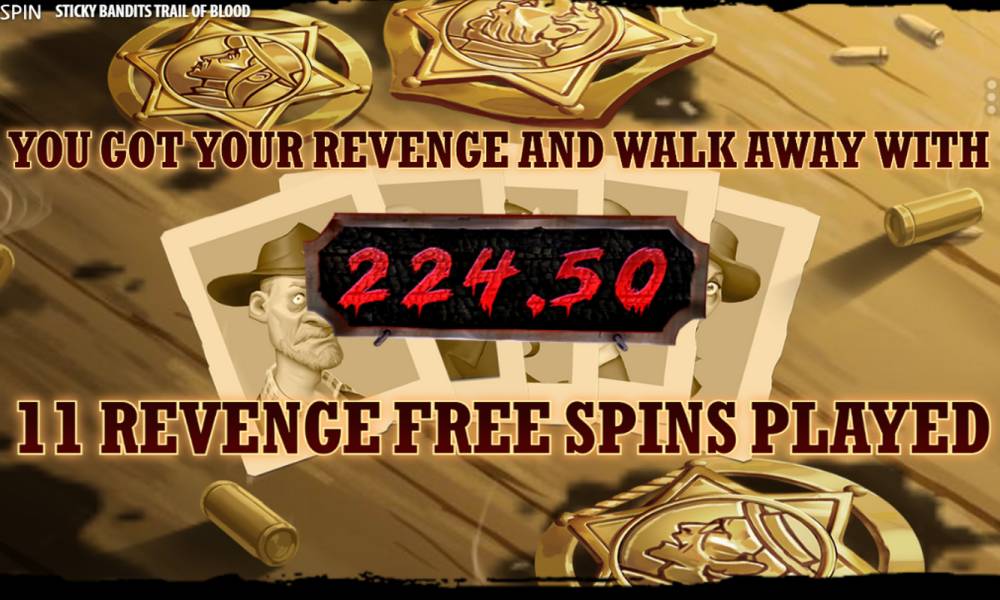 En el juego de bonificación, todos los símbolos Wild adoptan la forma de estrellas de sheriff y se vuelven sticky, lo que significa que permanecen en su sitio hasta el final de la serie de tiradas. Si alguna de las líneas está completamente ocupada por el Sticky Wild, se forma un Blood Trail y el jugador obtiene x300 a la apuesta efectiva. El Wild que aparece en la ronda de tiradas gratuitas Revenge también se conserva y añade 1 tirada gratuita.