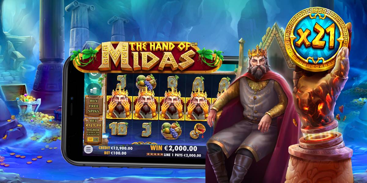 La tragaperras The Hand of Midas es un desarrollo de Pragmatic Play, que decidió reinterpretar el mito griego del rey Midas destacando su capacidad para convertir en oro todo lo que toca, además de otorgar un papel importante a su hija. Es el primer juego de la serie, lanzado en 2021, y sirvió de base para posteriores variaciones mejoradas.