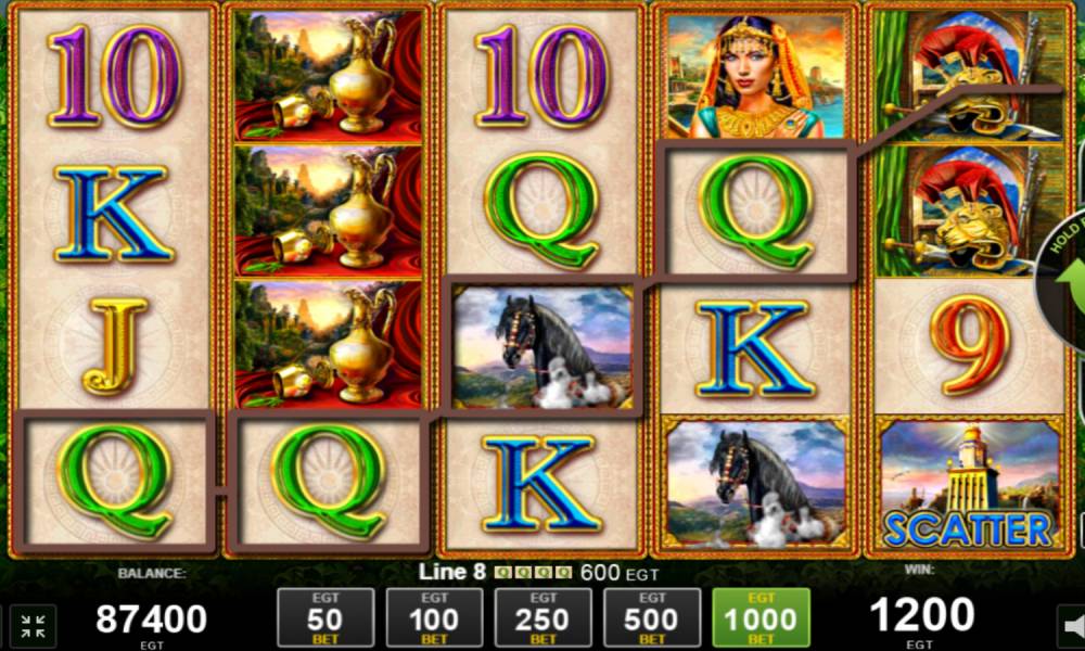 El campo de juego consta de 5 rodillos con cuatro filas de símbolos cada uno. Las líneas de pago son 50, pero no son fijas. El jugador puede elegir 1, 10, 20, 30 o las 50. La tragaperras tiene 6 tipos de símbolos senior y junior cada uno, que traen una recompensa de 3-5 piezas (Alejandro y su dama del corazón se pagan a partir de dos). Las cadenas de premios deben hacerse estrictamente de izquierda a derecha desde el primer rodillo en fila. Opciones para apostar en el giro un poco, pero son diversos - 50, 100, 250, 500 y 1000 monedas. Su valor en moneda depende del casino. El desarrollador añadió bonificaciones a la tragaperras online en forma de signos especiales, tiradas gratis, símbolos pegajosos, juego de riesgo y botes. El premio máximo es x250 de la apuesta. No merece la pena enfadarse por una cantidad tan pequeña, ya que la mecánica de la máquina implica muchos premios pequeños.