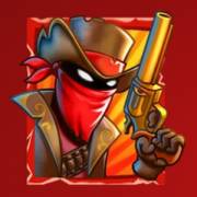 un cartel rojo con un cartel de se busca a un bandido con un revólver proporciona de 1 a 5 símbolos Gold Wild.