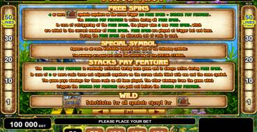 Función de pago Stacks. En un momento aleatorio del juego base, tres o más rodillos se llenan con el mismo símbolo. El juego paga ganancias sobre ellos en todas las líneas implicadas.