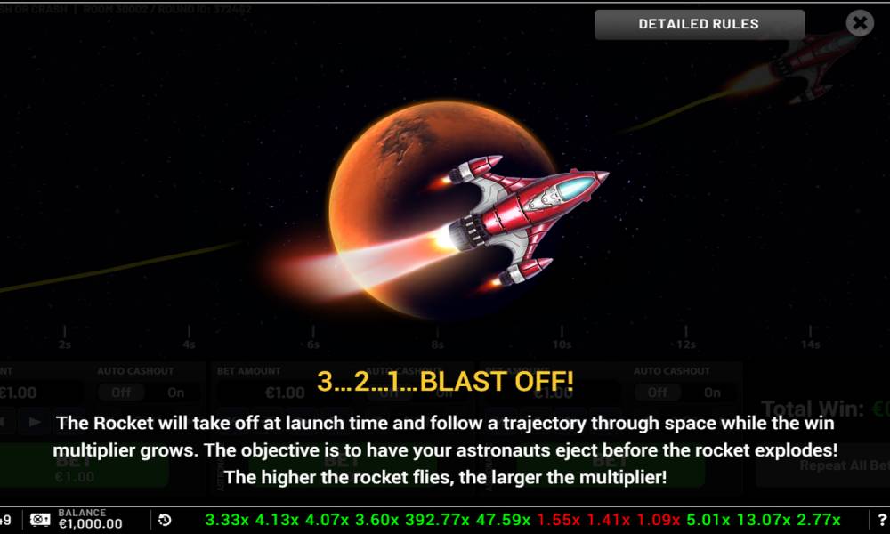 Todos los ajustes deben realizarse antes de que finalice la cuenta atrás y el cohete despegue hacia el espacio. Puede apostar 1, 2 o 3 cantidades por partida, o saltarse una ronda por completo.