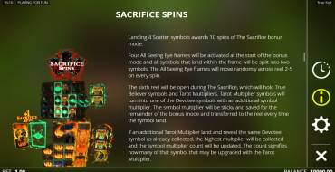 Tiradas de Sacrificio. La activación se produce cuando caen 4 símbolos Scatter, que darán el mismo número de casillas móviles iluminadas. El jugador obtiene 10 tiradas gratuitas. Las reglas de la ronda son las mismas que en The Seance.