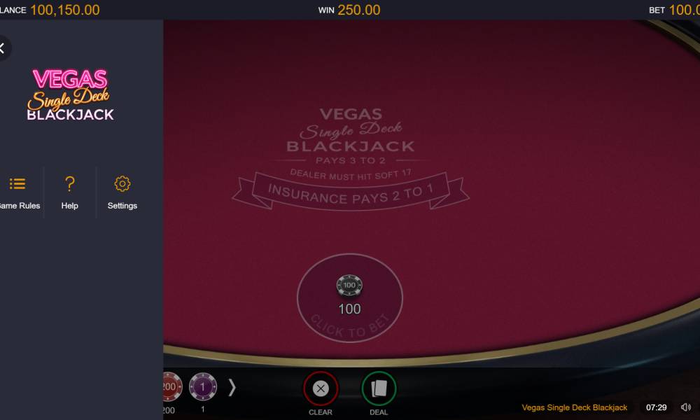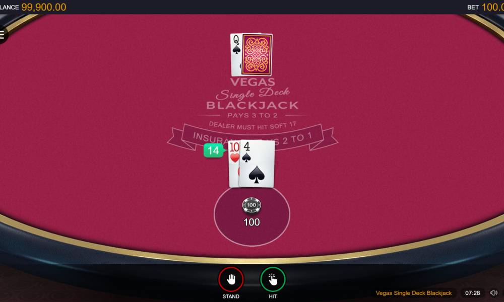 Vegas Single Deck Blackjack es un blackjack americano de un solo mazo, jugado con 52 cartas y sin comodines.