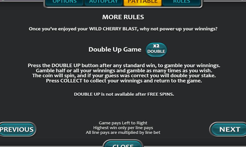 Wild Cherry Blast es una tragaperras lanzada por el proveedor Nucleus Gaming en 2019. La tragaperras online cuenta con animaciones vivas y brillantes, gráficos nítidos y una jugabilidad agradable. Su temática gira en torno a la explosión de bombas de cereza, así como de otras frutas. El juego utiliza una mecánica de pago estándar en líneas fijas y también ofrece interesantes tiradas gratuitas. Gracias a las ganancias frecuentes y a una bonificación por buy-in, los usuarios pueden recibir recompensas con regularidad, reponiendo rápidamente sus fondos.