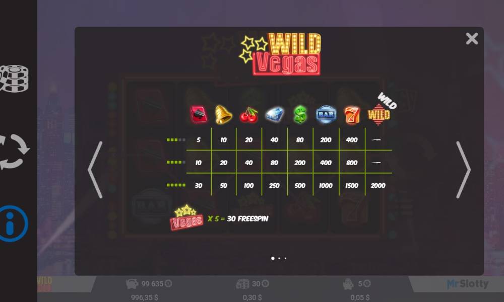 El proveedor MrSlotty ha conseguido que la tragaperras Wild Vegas sea fácil de usar y clara en su interfaz: