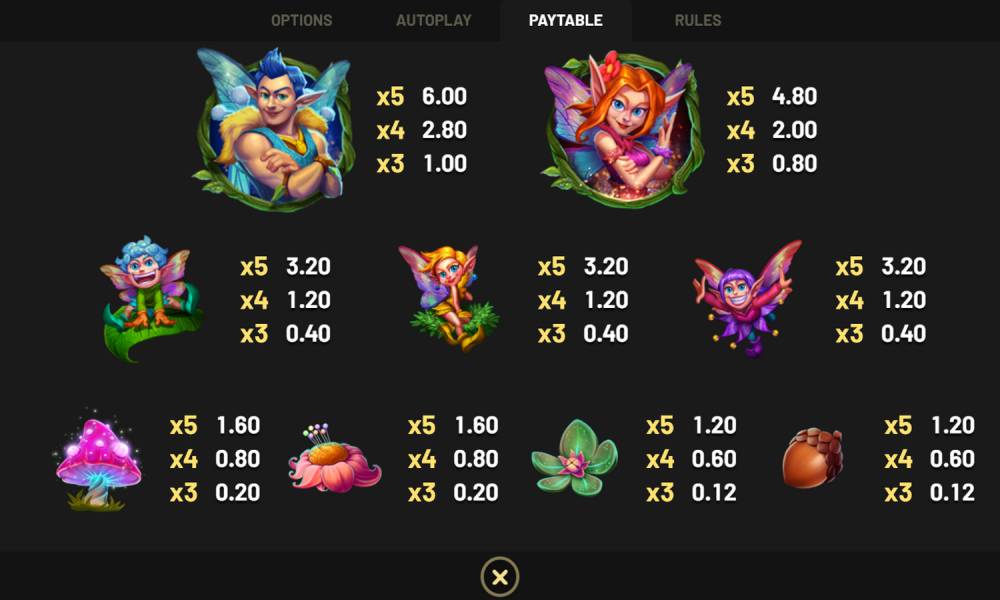 | La tema | Ranuras clásicas, Magia, Suerte, Acción, Fantasía, Naturaleza, Bosque, Flores, Hadas |
