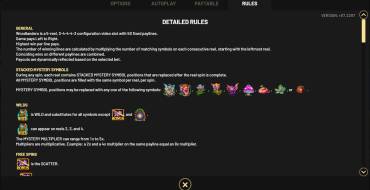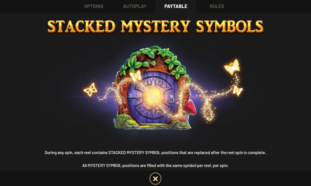 Símbolos de misterio apilados - Estos símbolos pueden caer en cualquier parte del campo de juego. La mayoría de las veces cubren rodillos enteros. Después de apilados, todos los símbolos de misterio revelan el mismo signo. Pero lo mismo será sólo en 1 carrete, entre ellos los carretes pueden diferir. El símbolo místico no puede abrir los símbolos Wild y Bonus.
