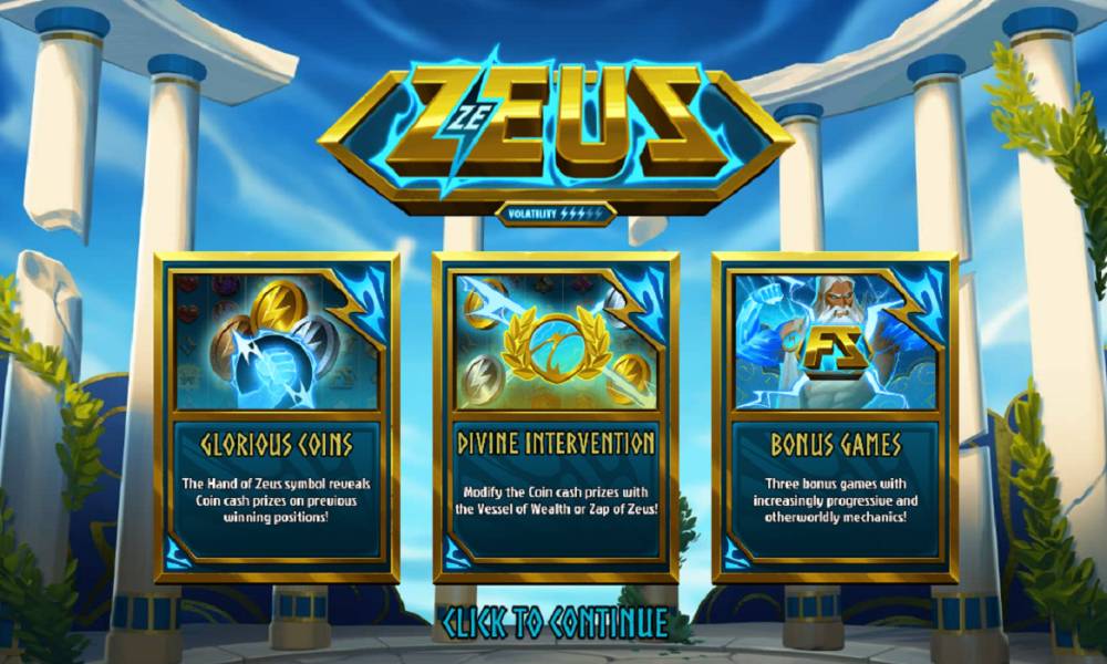 El juego Ze Zeus consta de seis rodillos y cinco filas de símbolos. Los jugadores deben reunir un mínimo de cinco símbolos idénticos tocándose horizontal o verticalmente para recibir una ganancia. Aquí se utiliza la mecánica de pago en racimo, en la que después de cada ganancia, los símbolos de premio desaparecen y otros nuevos caen en su lugar. Las apuestas oscilan entre 0,10 y 100 c.u. por tirada.