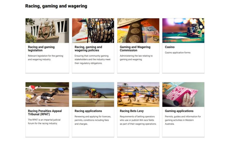 El Departamento de Administración Local, Deporte e Industrias Culturales de Australia Occidental regula varios ámbitos del juego en este país. El control y la concesión de licencias de juego es una de las principales tareas de este regulador.